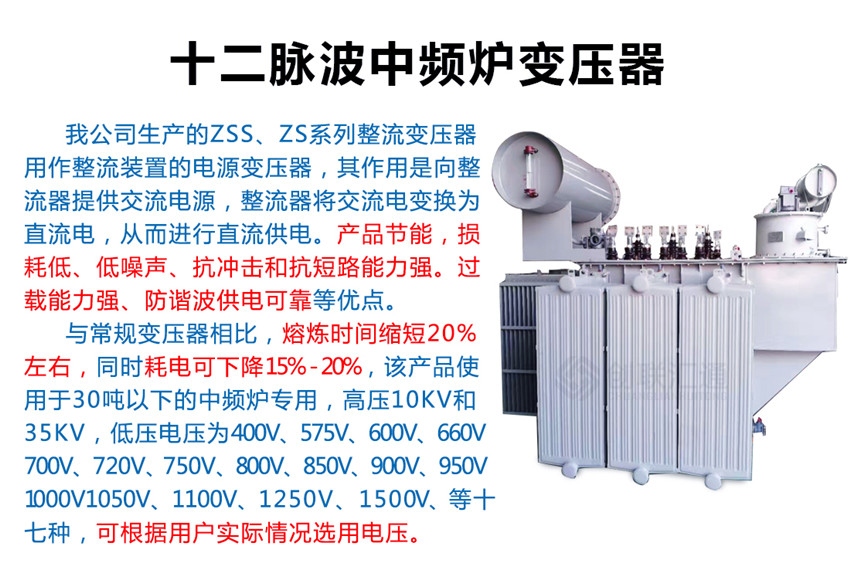 12脈波中頻爐專用變壓器適用于冶煉廠、特別是鑄造廠、大型用電企業等。
